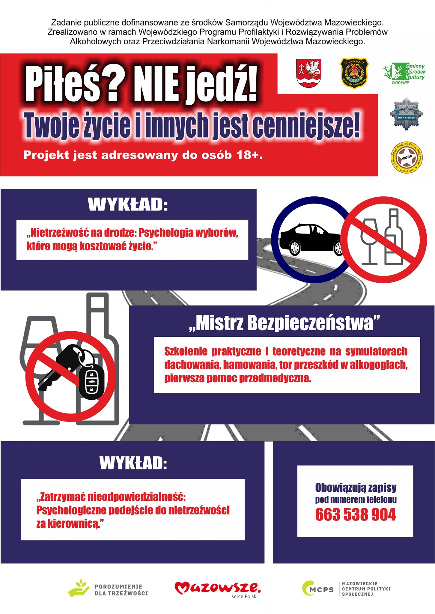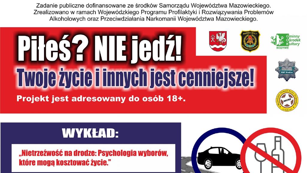 Warsztaty w Rudniku Małym przeznaczone są dla osób pełnoletnich - obowiązują zapisy pod telefonem 663 943 374.Będzie to pierwsze z cyklu trzech działań profilaktyczno-edukacyjnych OSP w Rudniku Małym mających na celu zwiększenie świadomości skutków kierowania pojazdami pod wpływem alkoholu. Kolejne - dwa wykłady - zaplanowano 27. i 28. września tego roku. Również na nie obowiązują zapisy pod podanym numerem telefonu.