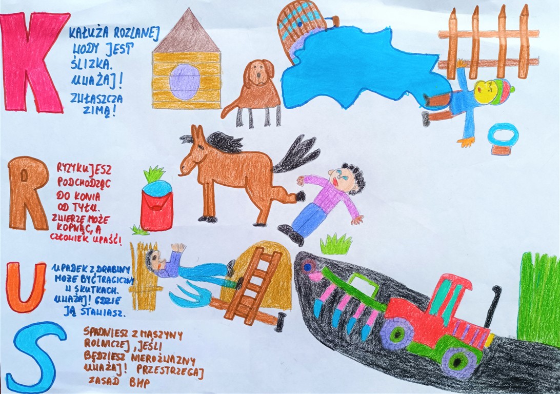 Przedsięwzięcie skierowane jest do uczniów szkół podstawowych z terenów wiejskich. Jego celem jest promocja pozytywnych zachowań związanych z pracą i zabawą dzieci w gospodarstwach rolnych. Zadaniem uczestników było wykonanie pracy plastycznej w formacie A3, w dowolnej technice, ilustrującej zasady bezpiecznej pracy w gospodarstwie oraz zagadnienia dotyczące dbałości o zdrowie psychiczne i fizyczne człowieka.W powiecie siedleckim do konkursu przystąpiło 122 uczniów z 21 szkół. Jury przyznało nagrody w dwóch kategoriach wiekowych: