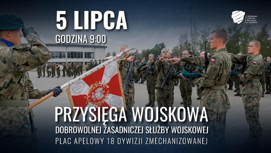 Uroczysta przysięga wojskowa żołnierzy Dobrowolnej Zasadniczej Służby Wojskowej odbędzie się na placu apelowym 18. Dywizji Zmechanizowanej w Siedlcach w sobotę, 5 lipca. Początek o godzinie 9:00.
