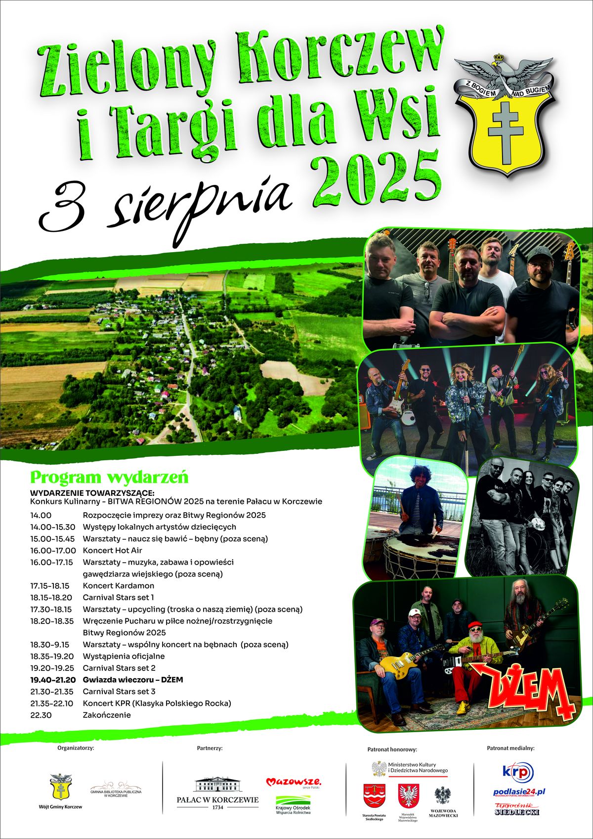 Występy znanych zespołów, pokazy tańca, konkursy kulinarne, stoiska rolnicze - to wszystko zaplanowano w niedzielę, 3 sierpnia w Korczewie, podczas corocznej imprezy plenerowej pod nazwą „ Zielony Korczew”. Wydarzenie będzie połączone z Targami dla Wsi. Gwiazdą wieczoru będzie zespół DŻEM.