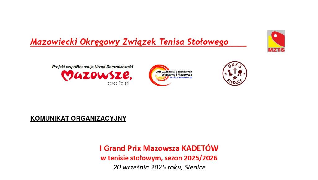 Sport Patronat medialny Śr. 17.09.2025 15:14:04 Siedlce gospodarzem I Grand Prix Mazowsza Kadetów w tenisie stołowym
