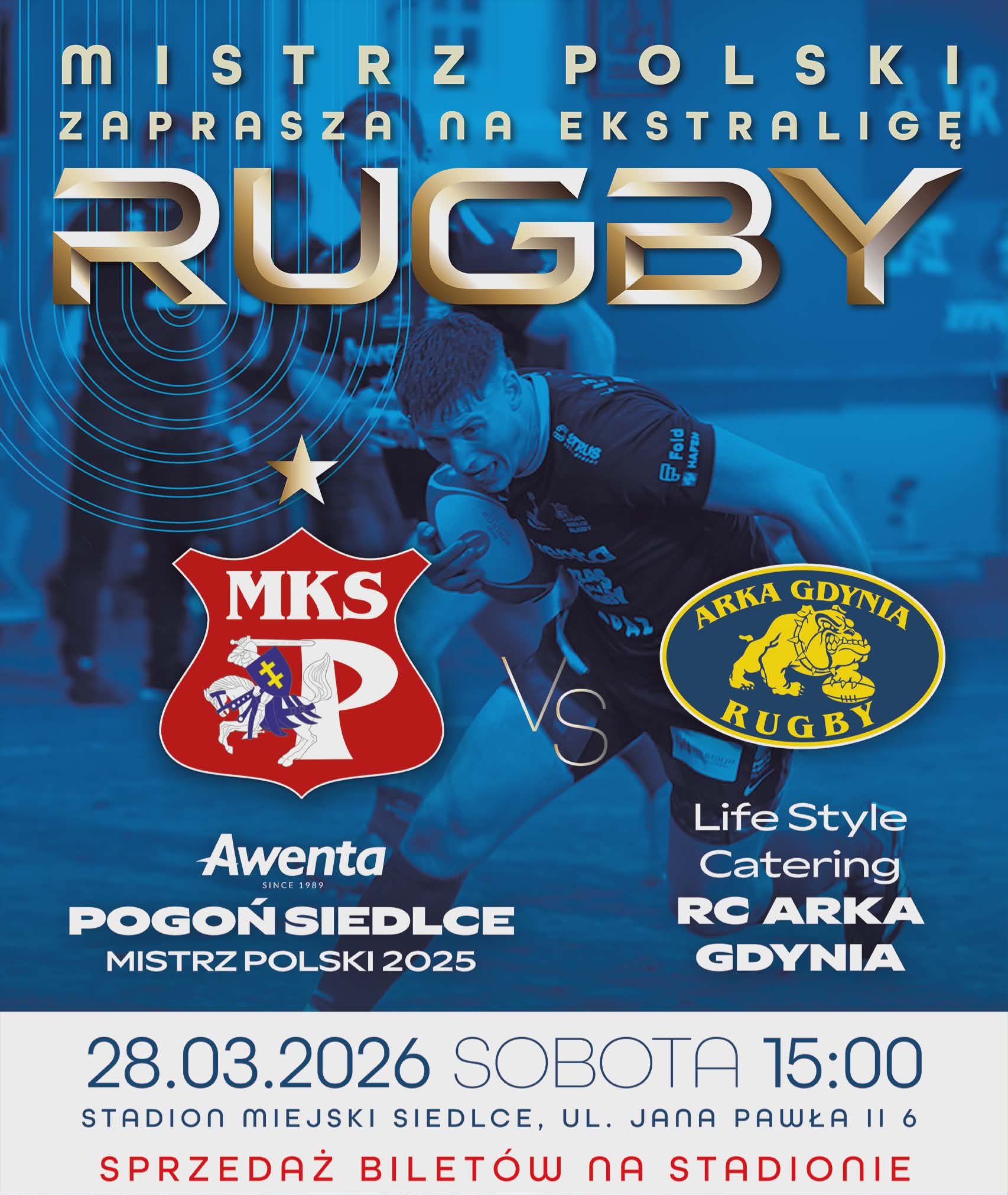 Awenta Pogoń Siedlce zaprasza kibiców na emocjonujące spotkanie Ekstraligi Rugby, które odbędzie się w sobotę, 28 marca, o godzinie 15.00 na Stadionie Miejskim w Siedlcach przy ul. Jana Pawła II 6. Będzie to pierwszy mecz Grupy Mistrzowskiej, w której rywalizuje sześć najlepszych drużyn Ekstraligi w walce o tytuł Mistrza Polski.