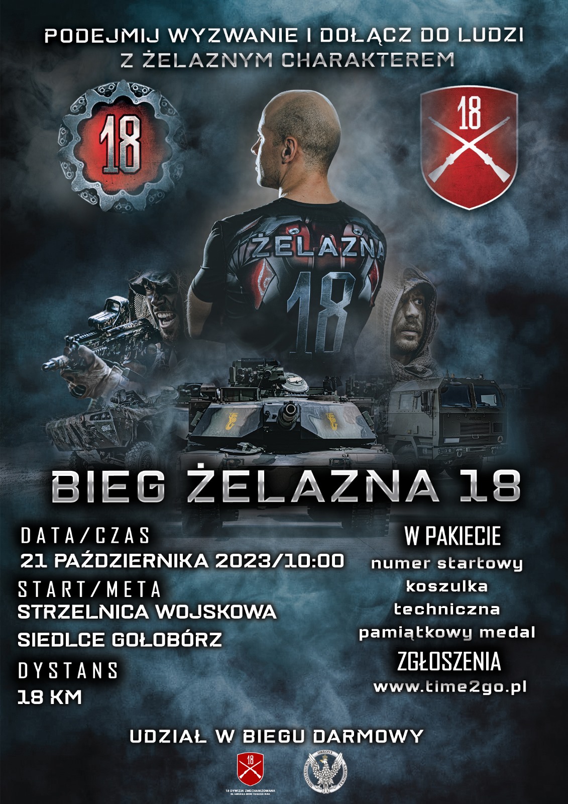 W sobotę 21 października odbędzie się bieg przełajowy ŻELAZNA OSIEMNASTKA na terenie lasu Gołobórz w Siedlcach, organizowany przez 18. Dywizję Zmechanizowaną.