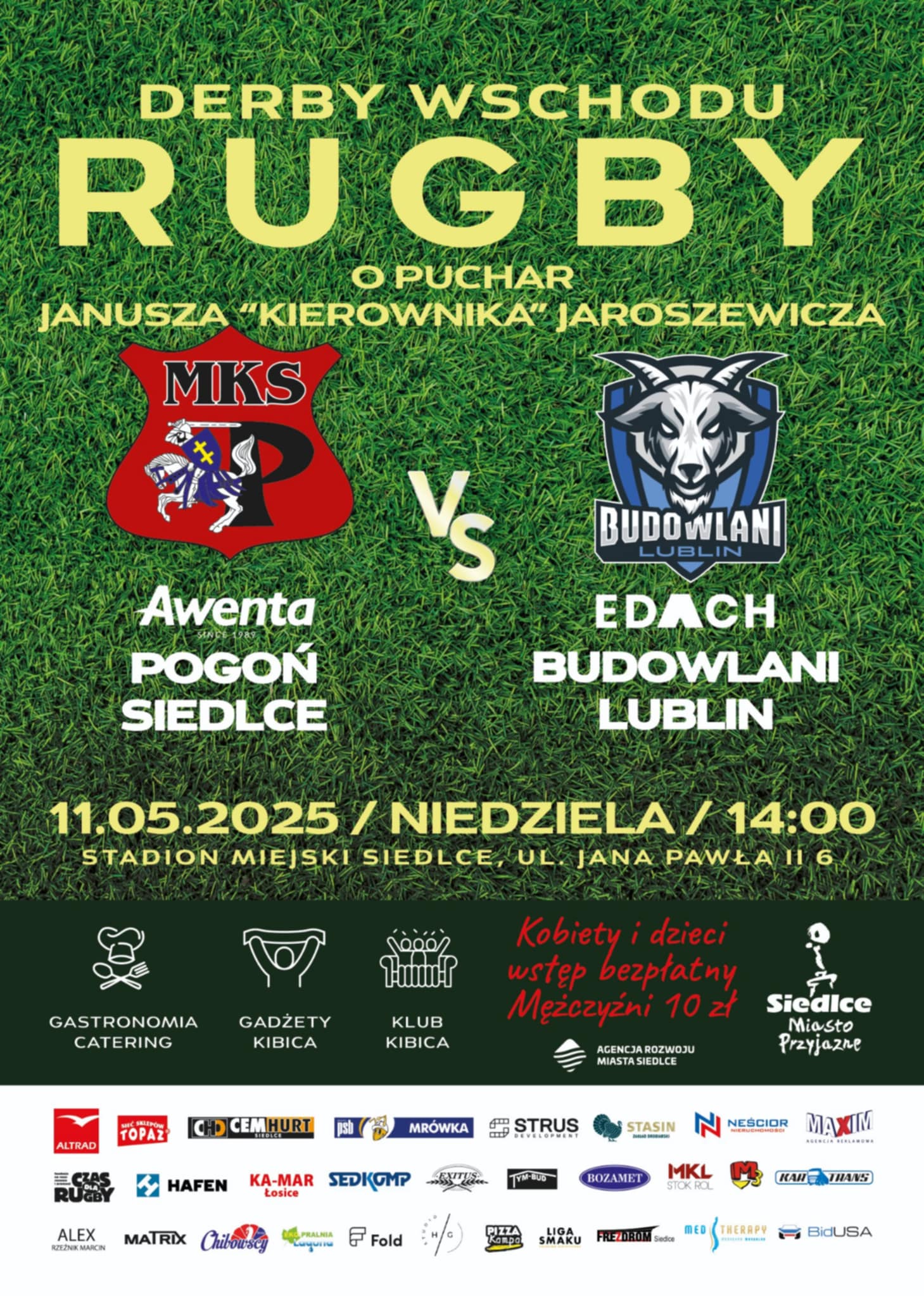 Spotkanie będzie nie tylko sportową rywalizacją, ale również okazją do uhonorowania zmarłego w tym roku Janusza „Kierownika” Jaroszewicza, legendarnego pierwszego kierownika siedleckiego klubu rugby. Zwycięzca derbów otrzyma Puchar jego imienia.Organizatorzy zapowiadają wiele atrakcji dla kibiców – w tym poczęstunek i strefę rekreacyjną dla posiadaczy biletów. To kolejny ważny krok na drodze Pogoni Siedlce do walki o mistrzostwo Polski.