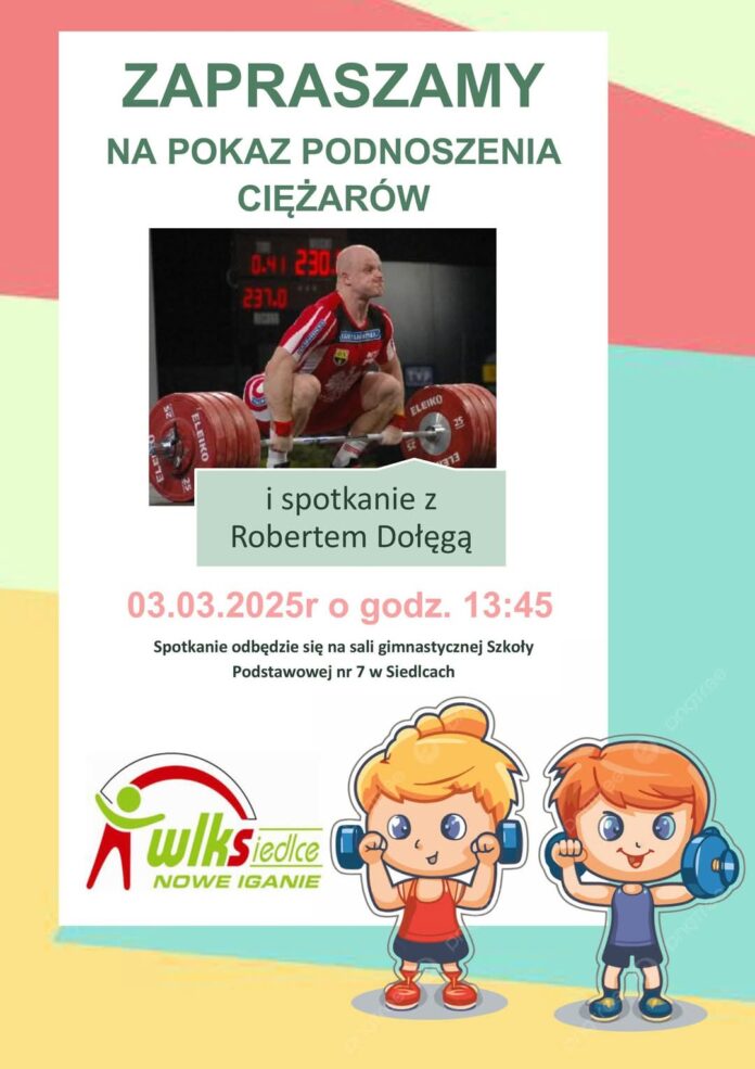 Pokaz podnoszenia ciężarów, zaprezentowany przez niegdyś znakomitego i utytułowanego zawodnika, a obecnie trenera Roberta Dołęgę, odbędzie się w Szkole Podstawowej nr 7 w Siedlcach. Pokaz odbędzie się w poniedziałek, 3 marca, o godz. 13:45.