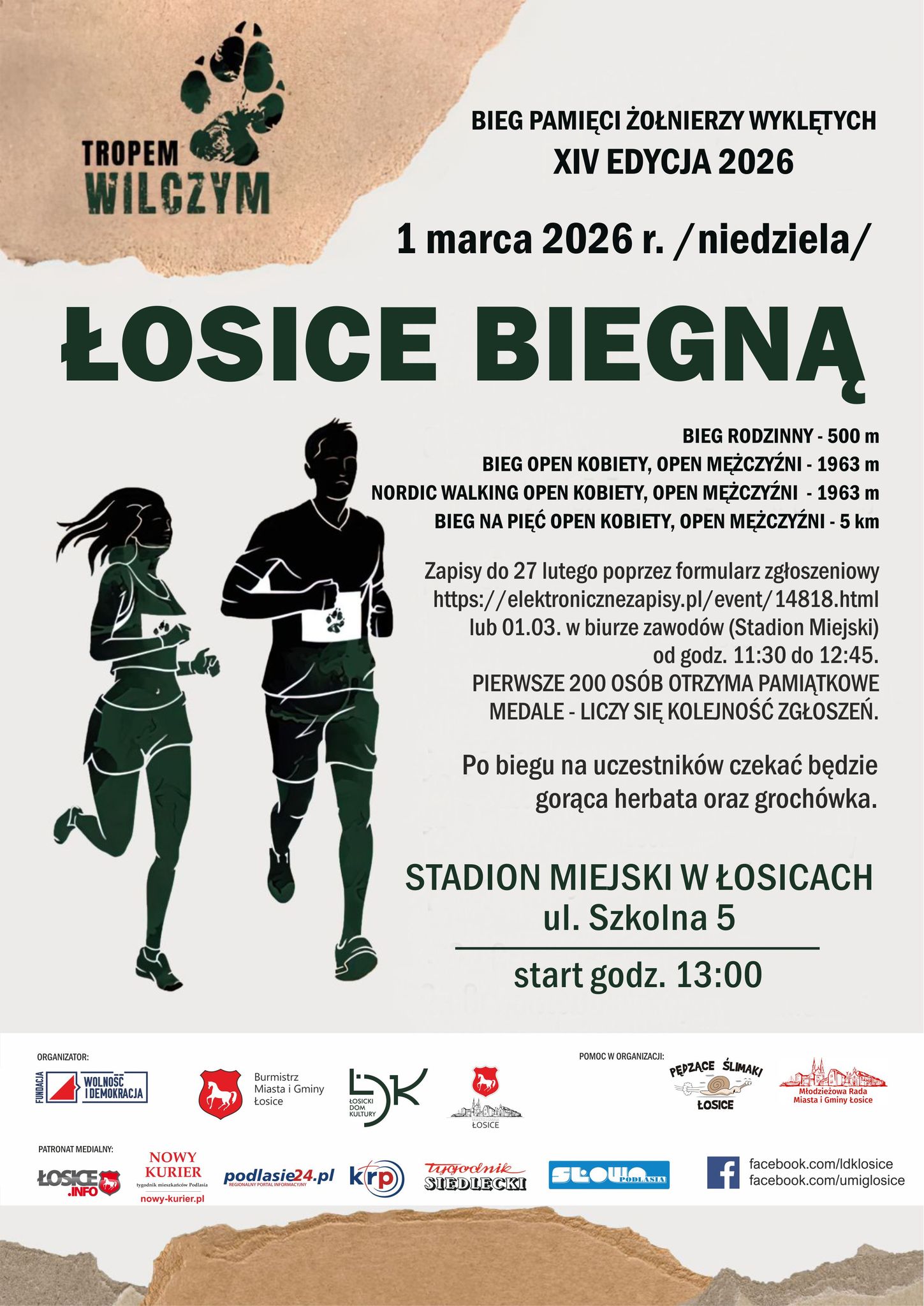 Łosice po raz kolejny dołączą 1 marca do miejsc, w których odbędzie się bieg ku czci Żołnierzy Wyklętych. Ze względu na charakter wydarzenia każdy, kto dotrze do mety, będzie zwycięzcą. Łosicki Dom Kultury wraz z Burmistrzem Miasta i Gminy Łosice zapraszają mieszkańców oraz gości do udziału w wydarzeniu o charakterze sportowo-patriotycznym.