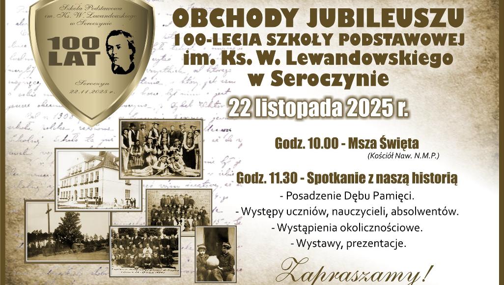 Region Patronat medialny Wodynie Szkoła Pt. 21.11.2025 19:15:48 Seroczyn świętuje 100-lecie Szkoły Podstawowej im. ks. W. Lewandowskiego
